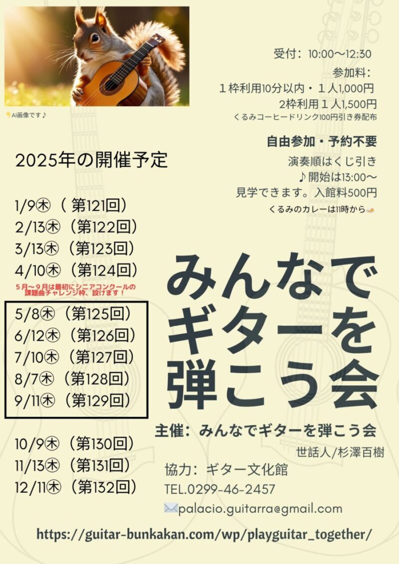 明日10/09㊍は第130回「みんなでギターを弾こう会」(自由参加)の日です♪