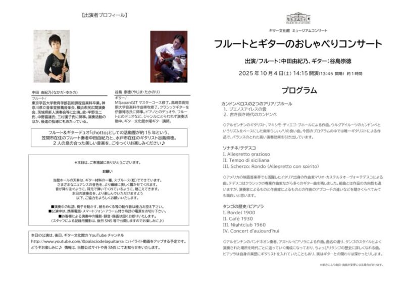 「フルートの音色の美しさ、豊かな表現力。それを支えるギターとのデュオ。良かったです」