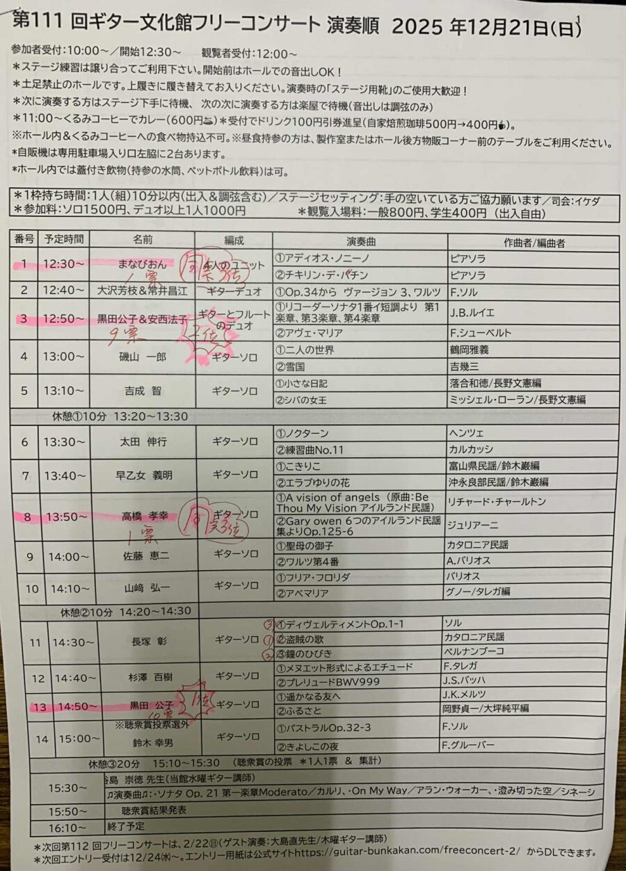 第111回フリーコンサート(12/21開催)