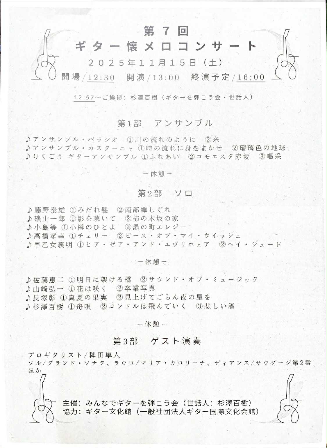 (プロゲスト演奏は、木曜ギター講師の大島直先生です)