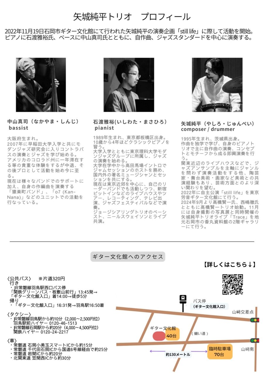 【出演】矢城純平トリオ~ピアノ/石渡雅裕(いしわた・まさひろ)、ベース/中山真司(なかやま・しんじ)、ドラムス/矢城純平(やしろ・じゅんぺい)