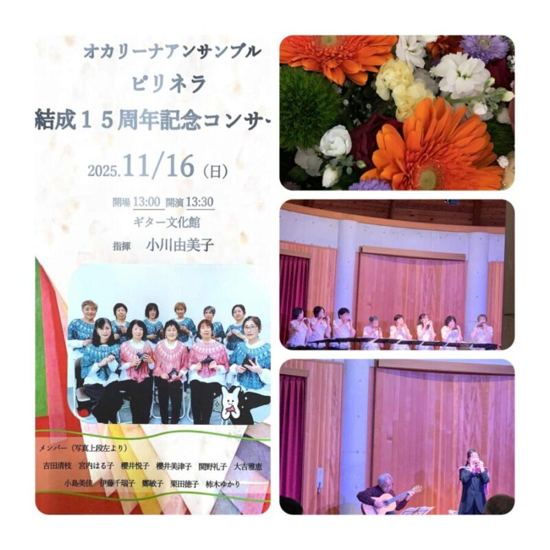 小川由美子先生指導のオカリーナ アンサンブル「ピリネラ」結成15周年記念コンサートが当館にて開かれました。生徒さん、オカリーナファンがたくさん集い、満席のコンサートでした。