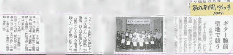 第19回シニアギターコンクール記事が地元の茨城新聞10/10付け・県南地域情報ページに掲載されました(^▽^)/嬉しいですね!