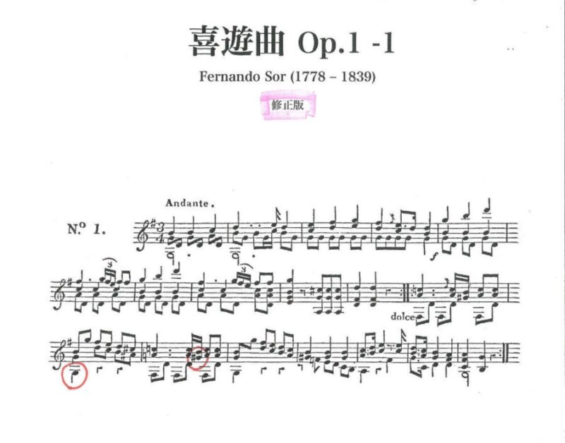 これらは全てF. ソル存命中に出版されていますが、この2箇所は音が違っています。