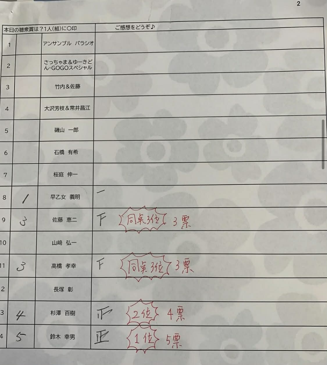ご注意:1年6回開催のうち、年内2度聴衆賞(第1位)を獲得された方は「聴衆賞の投票選外扱い」になります。